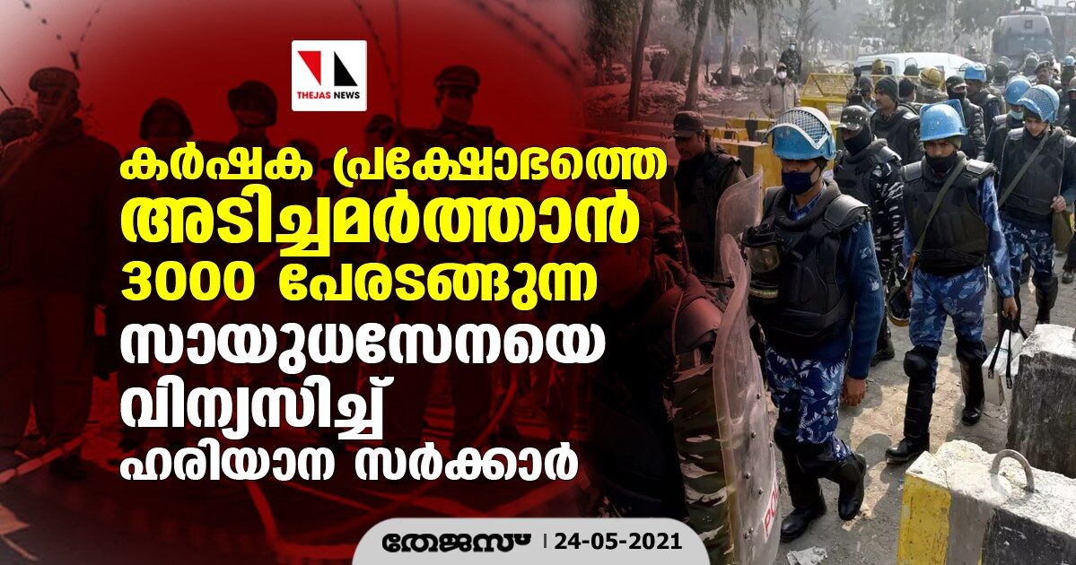 കർഷക പ്രക്ഷോഭത്തെ അടിച്ചമർത്താൻ 3000 പേരടങ്ങുന്ന സായുധസേനയെ വിന്യസിച്ച് ഹരിയാന സർക്കാർ