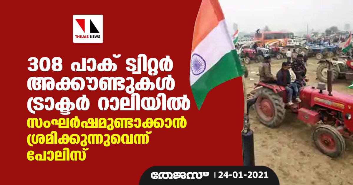 308 പാക് ട്വിറ്റര് അക്കൗണ്ടുകള് ട്രാക്ടര് റാലിയില് സംഘര്ഷമുണ്ടാക്കാന് ശ്രമിക്കുന്നുവെന്ന് പോലിസ്