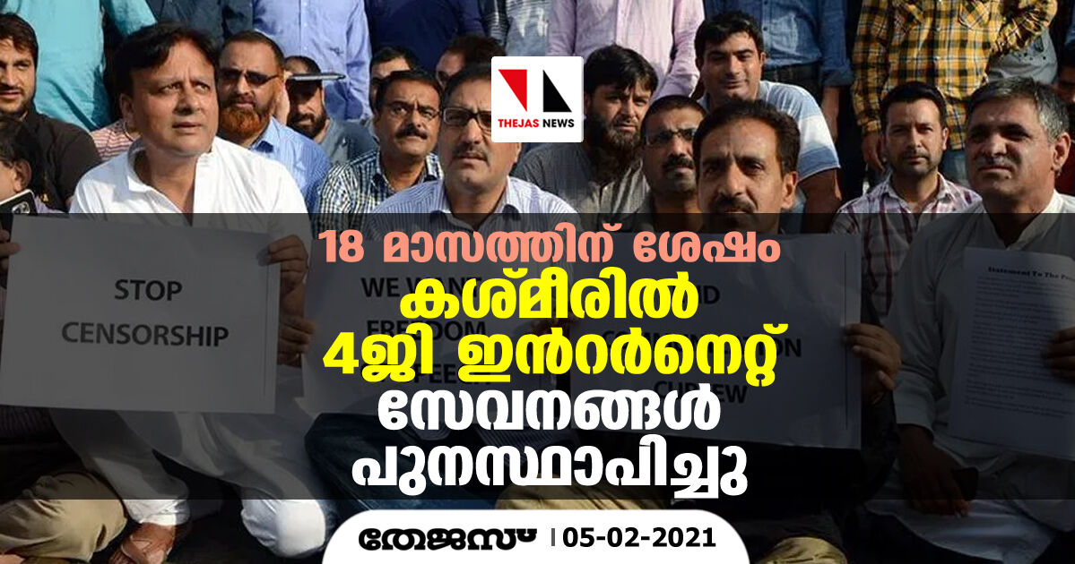 18 മാസത്തെ നിരോധനത്തിന് ശേഷം കശ്മീരില് 4ജി ഇന്റര്നെറ്റ് സേവനങ്ങള് പുനസ്ഥാപിച്ചു