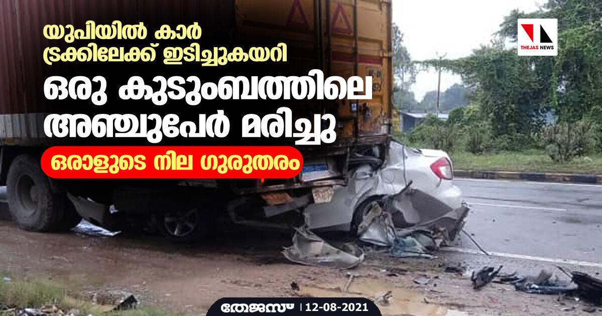 യുപിയില് കാര് ട്രക്കിലേക്ക് ഇടിച്ചുകയറി ഒരു കുടുംബത്തിലെ അഞ്ചുപേര് മരിച്ചു; ഒരാളുടെ നില ഗുരുതരം