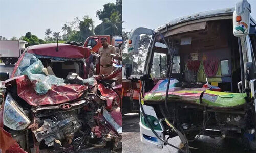 തിരുവനന്തപുരം ഭാഗത്തേക്ക് പോയ മിനി ബസും എതിര് ദിശയില്വന്ന കാറും കൂട്ടിയിടിക്കുകയായിരുന്നു എന്നു പോലിസ് പറയുന്നു. ദേശീയപാത നിര്മ്മാണത്തിന്റെ ഭാഗമായി ഗതാഗത നിയന്ത്രണം ഏര്പ്പെടുത്തിയിരുന്ന ഭാഗത്താണ് അപകടമുണ്ടായത്. രണ്ടുവരി പാതയില് ഒരുവരിയിലൂടെ മാത്രമാണ് വാഹനങ്ങള് കടത്തിവിട്ടിരുന്നത്. എന്നാല് ഇതറിയാതെ എത്തിയ കാറാണ് അപകടത്തില്പ്പെട്ടത്.