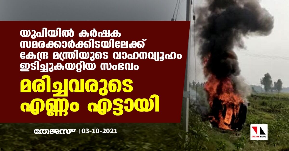 യുപിയില് കര്ഷക സമരക്കാര്ക്കിടയിലേക്ക് കേന്ദ്രമന്ത്രിയുടെ വാഹനവ്യൂഹം ഇടിച്ചുകയറ്റിയ സംഭവം; മരിച്ചവരുടെ എണ്ണം എട്ടായി