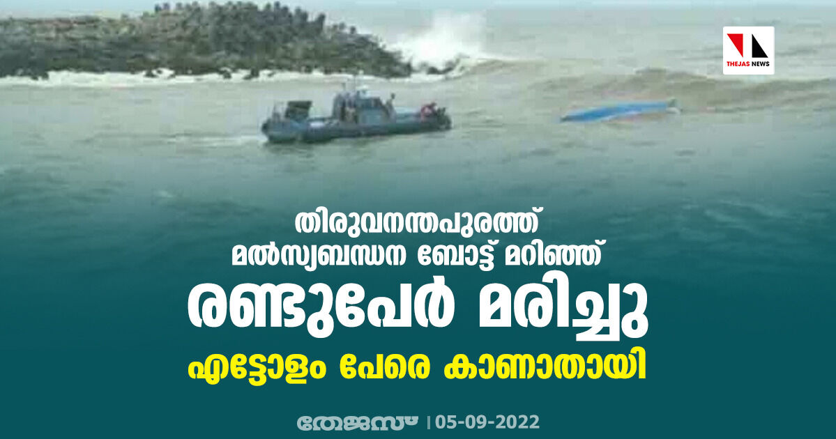 തിരുവനന്തപുരത്ത് മൽസ്യബന്ധന ബോട്ട് മറിഞ്ഞ് രണ്ടുപേര് മരിച്ചു; എട്ടോളം പേരെ കാണാതായി