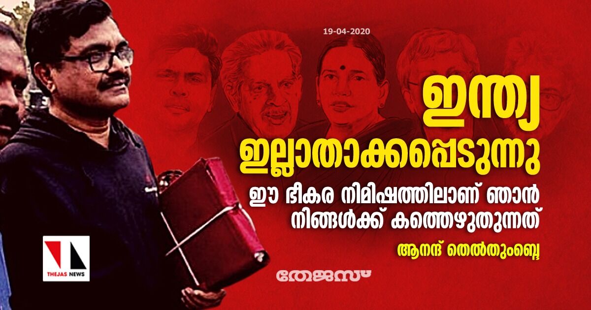 ഇന്ത്യ ഇല്ലാതാക്കപ്പെടുന്നു, ഈ ഭീകര നിമിഷത്തിലാണ് ഞാൻ നിങ്ങൾക്ക് കത്തെഴുതുന്നത്: ആനന്ദ് തെൽതുംബ്ദെ