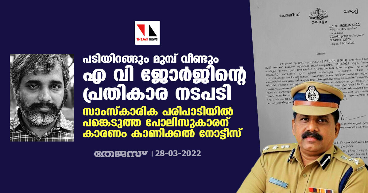 പടിയിറങ്ങും മുമ്പ് വീണ്ടും എ വി ജോര്ജിന്റെ പ്രതികാര നടപടി; സാംസ്കാരിക പരിപാടിയില് പങ്കെടുത്ത പോലിസുകാരന് കാരണം കാണിക്കല് നോട്ടീസ്