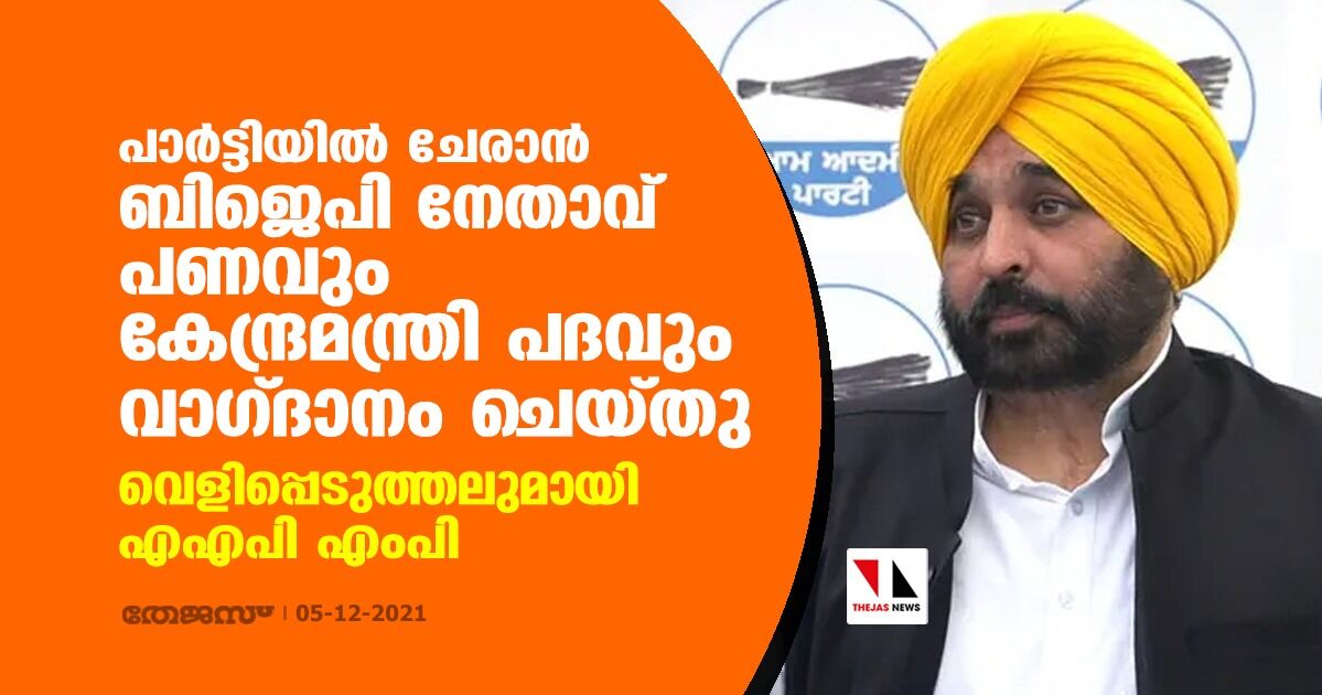 പാര്ട്ടിയില് ചേരാന് ബിജെപി നേതാവ് പണവും കേന്ദ്രമന്ത്രി പദവും വാഗ്ദാനം ചെയ്തു; വെളിപ്പെടുത്തലുമായി എഎപി എംപി