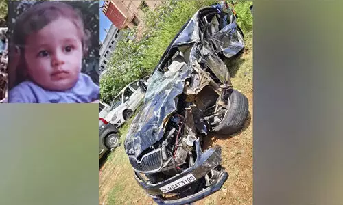 കാര് ഡിവൈഡറിലിടിച്ച് മറിഞ്ഞു, പിന്നാലെ ബസ് പാഞ്ഞുകയറി; ഒരു വയസുകാരന് മരിച്ചു