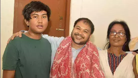 അഖില് ഗൊഗോയ് ഭാര്യയ്ക്കും മകനുമൊപ്പം