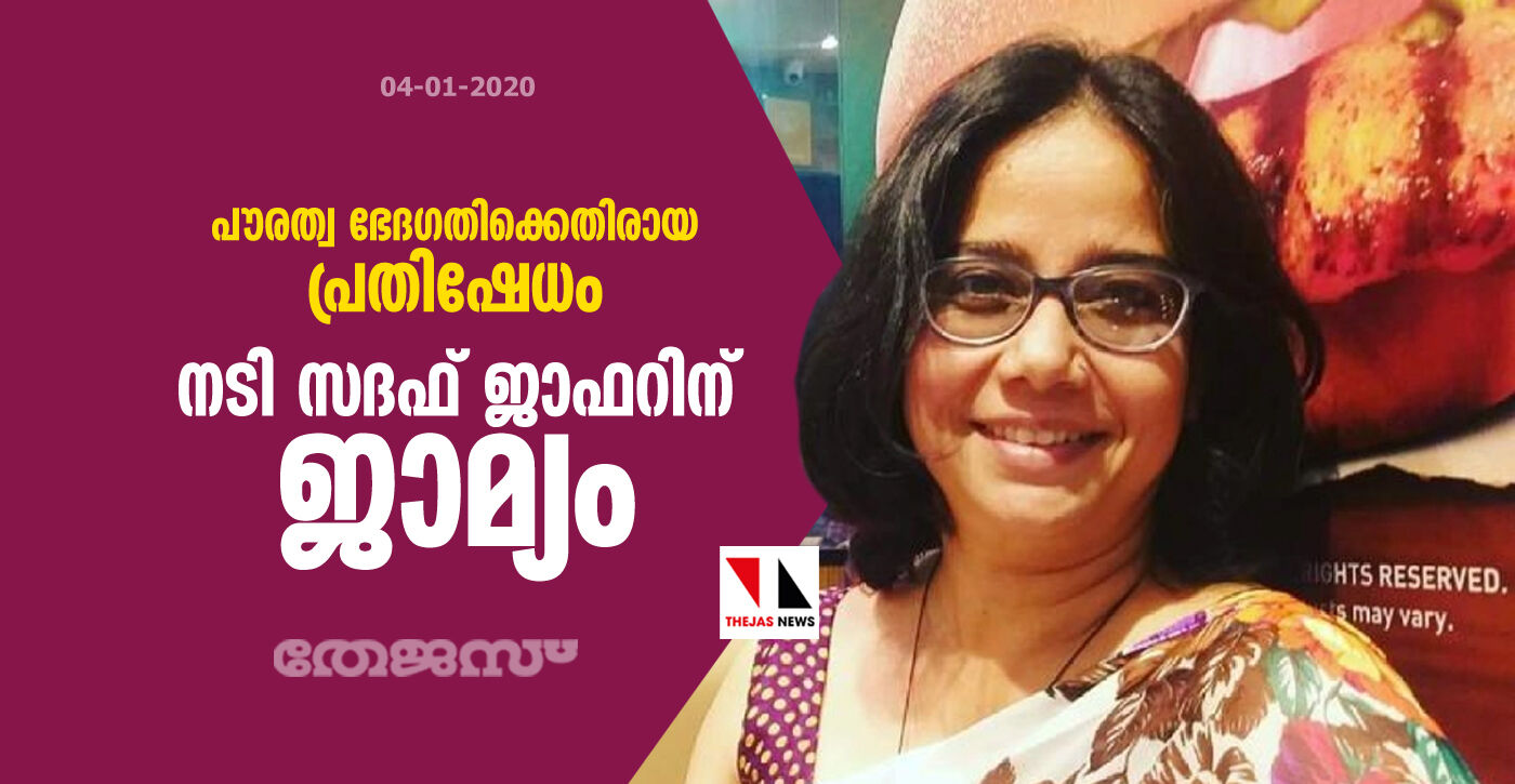 പൗരത്വ ഭേദഗതിക്കെതിരായ പ്രതിഷേധം; നടി സദഫ് ജാഫറിന് ജാമ്യം