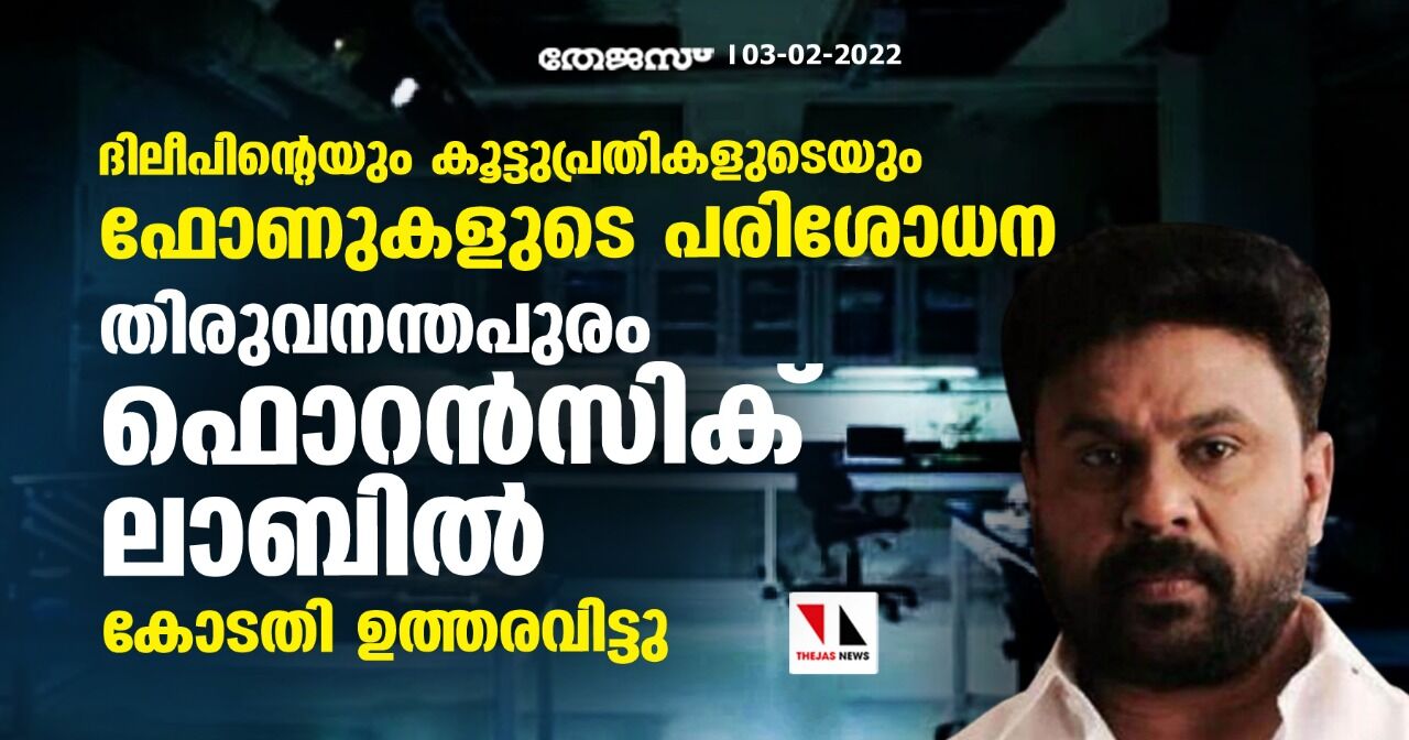 ദിലീപിന്റെയും കൂട്ടുപ്രതികളുടെയും ഫോണുകളുടെ പരിശോധന തിരുവനന്തപുരം ഫൊറന്സിക് ലാബില്; കോടതി ഉത്തരവിട്ടു