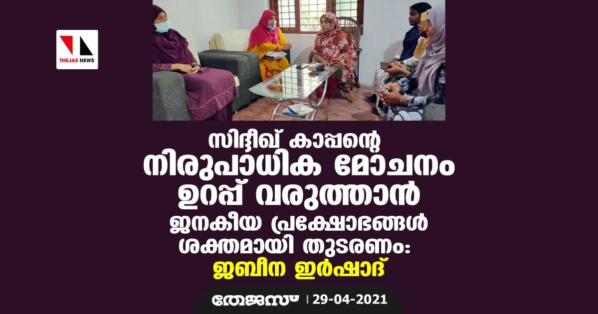 സിദ്ദീഖ് കാപ്പൻെറ നിരുപാധിക മോചനം ഉറപ്പ് വരുത്താൻ ജനകീയ പ്രക്ഷോഭങ്ങൾ ശക്തമായി തുടരണം: ജബീന ഇർഷാദ്