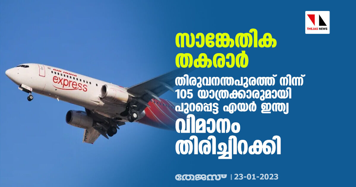സാങ്കേതിക തകരാര്; തിരുവനന്തപുരത്ത് നിന്ന് 105 യാത്രക്കാരുമായി പുറപ്പെട്ട എയര് ഇന്ത്യ വിമാനം തിരിച്ചിറക്കി
