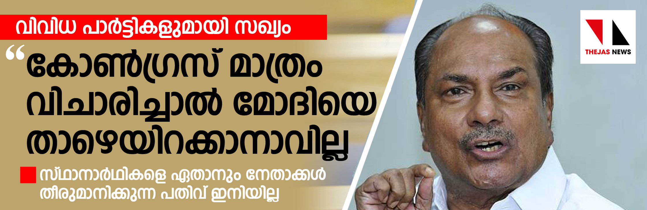 കോണ്ഗ്രസ് മാത്രം വിചാരിച്ചാല് മോദി സര്ക്കാരിനെ താഴെയിറക്കാനാവില്ല: എ കെ ആന്റണി