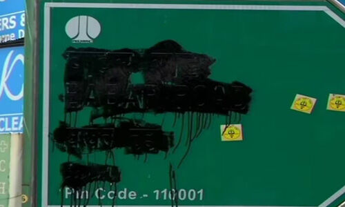 അക്ബര്, ബാബര് റോഡുകളുടെ സൈന്ബോര്ഡില് കറുത്ത പെയിന്റടിച്ച് ഹിന്ദുത്വര് (വീഡിയോ)