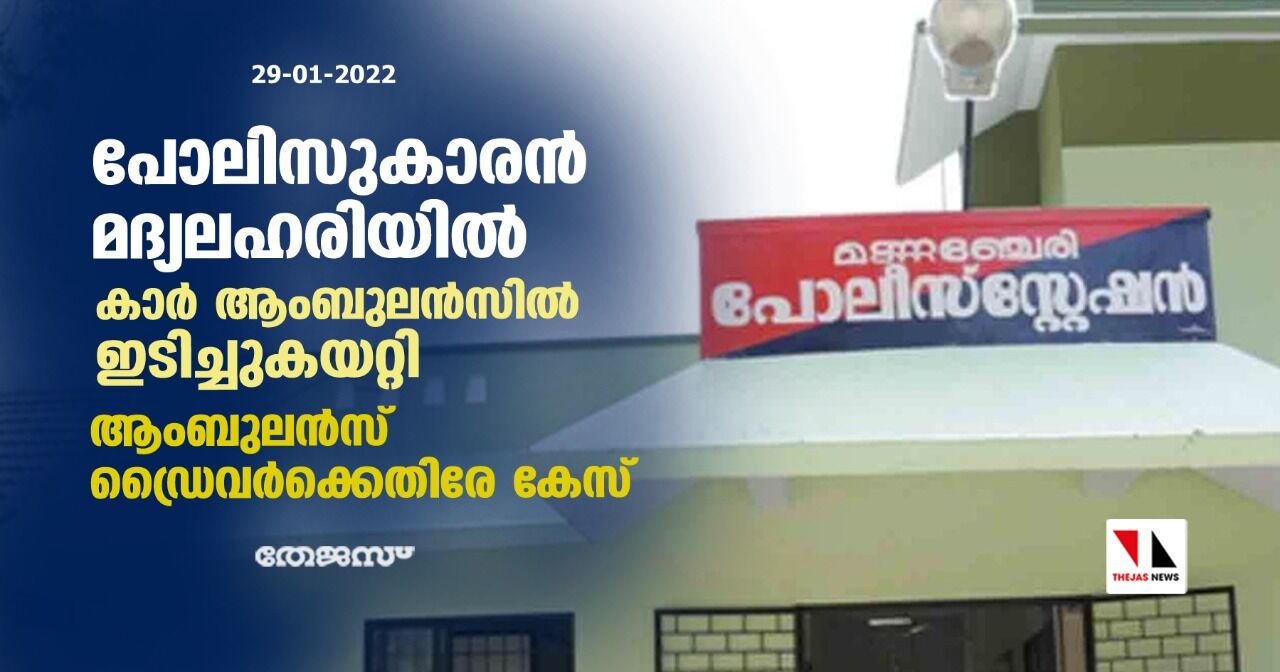 പോലിസുകാരൻ മദ്യലഹരിയിൽ കാർ ആംബുലൻസിൽ ഇടിച്ചുകയറ്റി; ആംബുലൻസ് ഡ്രൈവർക്കെതിരേ കേസ്