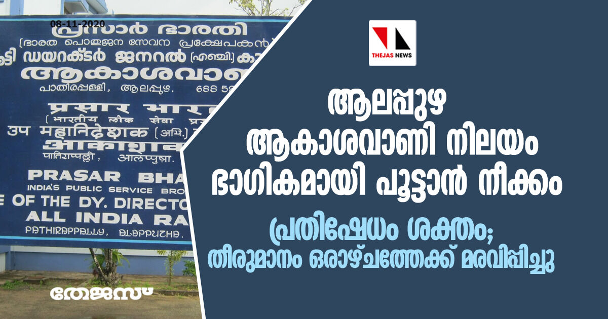 ആലപ്പുഴ ആകാശവാണി നിലയം ഭാഗികമായി പൂട്ടാന് നീക്കം; പ്രതിഷേധം ശക്തം; തീരുമാനം ഒരാഴ്ചത്തേക്ക് മരവിപ്പിച്ചു