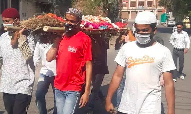 ലോക്ക് ഡൗണ്: ഹിന്ദു സ്ത്രീയുടെ മൃതദേഹം ചുമന്ന് മുസ് ലിംകള് നടന്നത് 2.5 കിലോമീറ്റര്(വീഡിയോ)