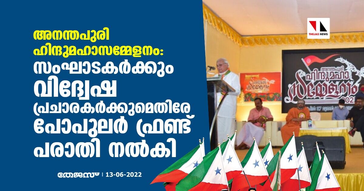 അനന്തപുരി ഹിന്ദുമഹാസമ്മേളനം: സംഘാടകര്ക്കും വിദ്വേഷ പ്രചാരകര്ക്കുമെതിരേ പോപുലര് ഫ്രണ്ട് പരാതി നല്കി