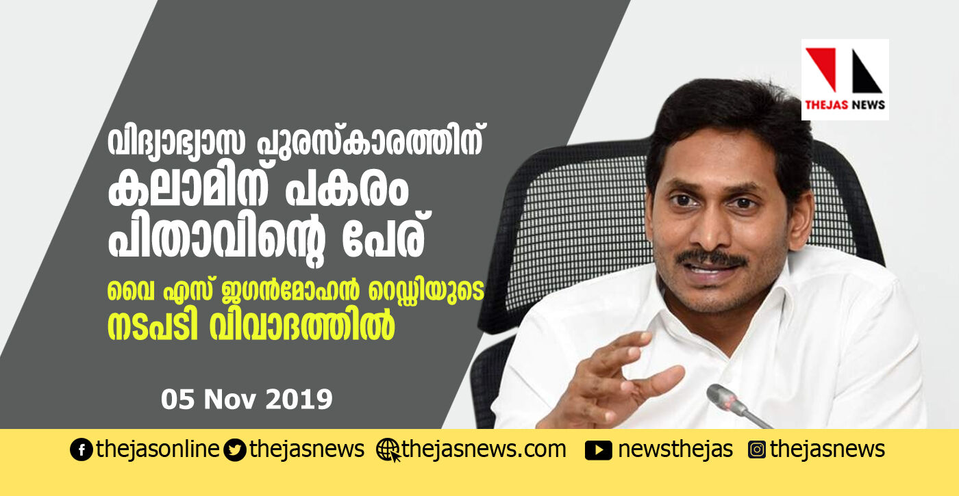 ഹൈദരാബാദ്: മുന് രാഷ്ട്രപതി എ പി ജെ അബ്ദുള് കലാമിന്റെ നാമധേയത്തിലുള്ള വിദ്യാഭ്യാസ പുരസ്കാരത്തിന്റെ പേര് മാറ്റി സ്വന്തം പിതാവിന്റെ പേര് നല്കിയ ആന്ധ്ര മുഖ്യമന്ത്രി വൈ എസ് ജഗന്മോഹന് റെഡ്ഡിയുടെ നടപടി വിവാദത്തില്.