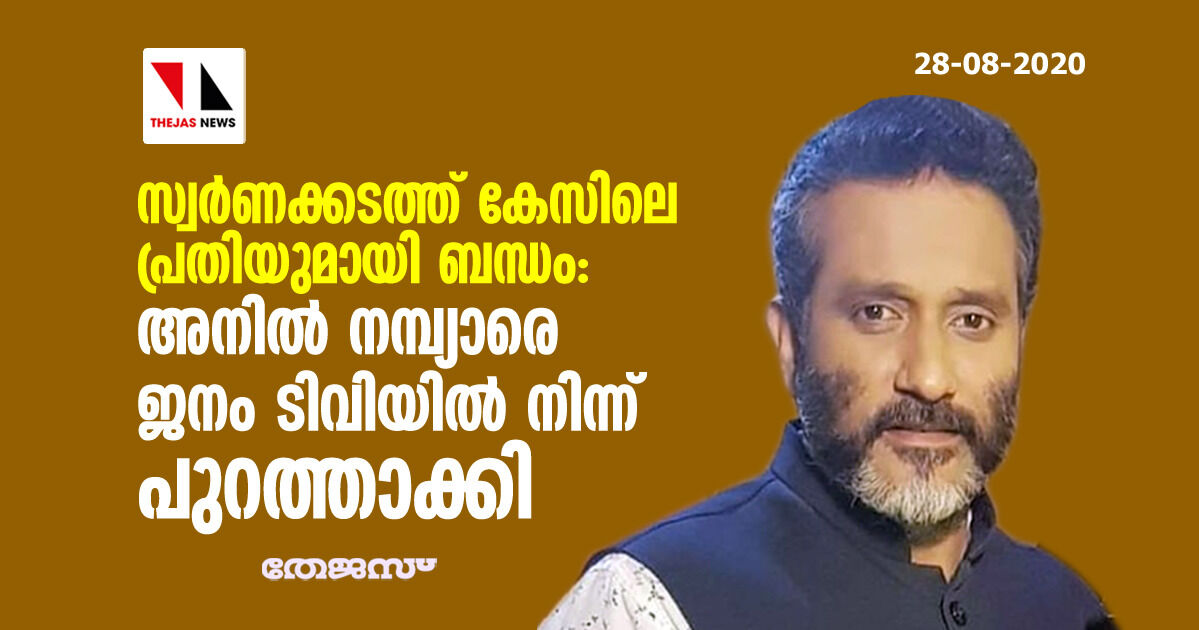 സ്വര്ണക്കടത്ത് കേസിലെ പ്രതിയുമായി ബന്ധം: അനില് നമ്പ്യാരെ ജനം ടിവിയില് നിന്ന് പുറത്താക്കി