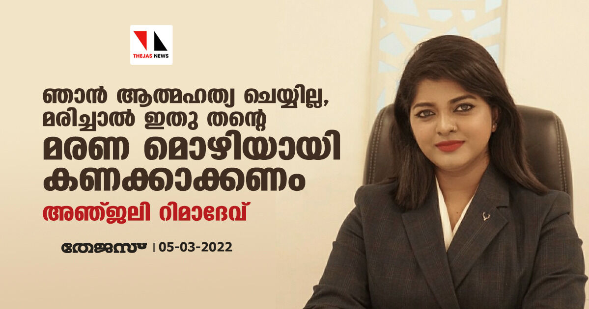 ഞാൻ ആത്മഹത്യ ചെയ്യില്ല, മരിച്ചാല് ഇതു തന്റെ മരണ മൊഴിയായി കണക്കാക്കണം: അഞ്ജലി റിമാദേവ്