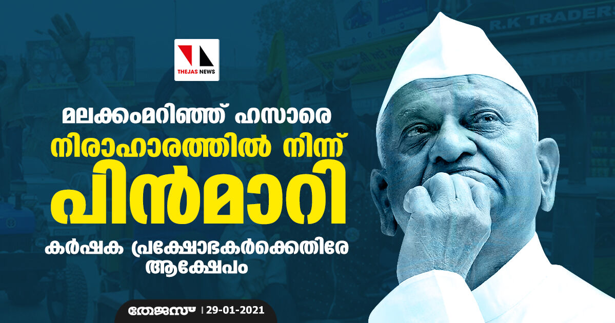മലക്കംമറിഞ്ഞ് ഹസാരെ; നിരാഹാരത്തിൽ നിന്ന് പിൻമാറി, കര്ഷക പ്രക്ഷോഭകർക്കെതിരേ ആക്ഷേപം