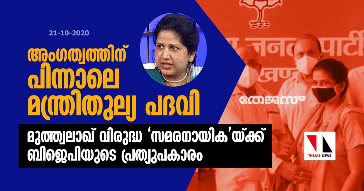 അംഗത്വത്തിനു പിന്നാലെ മന്ത്രിതുല്യ പദവി; മുത്ത്വലാഖ് വിരുദ്ധ 'സമരനായിക'യ്ക്ക് ബിജെപിയുടെ പ്രത്യുപകാരം