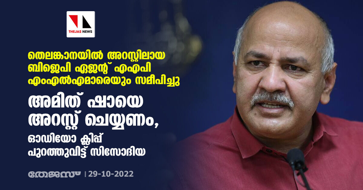 തെലങ്കാനയില് അറസ്റ്റിലായ 'ബിജെപി ഏജന്റ്' എഎപി എംഎല്എമാരെയും സമീപിച്ചു; അമിത് ഷായെ അറസ്റ്റ് ചെയ്യണം, ഓഡിയോ ക്ലിപ്പ് പുറത്തുവിട്ട് സിസോദിയ