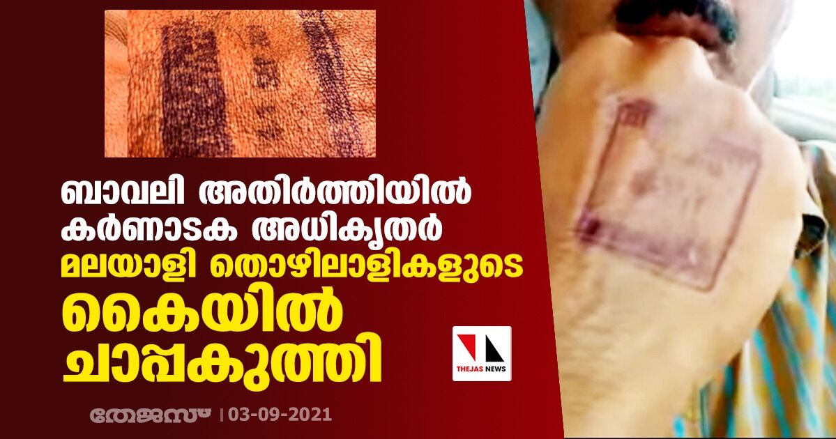 ബാവലി അതിര്ത്തിയില് കര്ണാടക അധികൃതര് മലയാളി തൊഴിലാളികളുടെ കൈയില് ചാപ്പകുത്തി