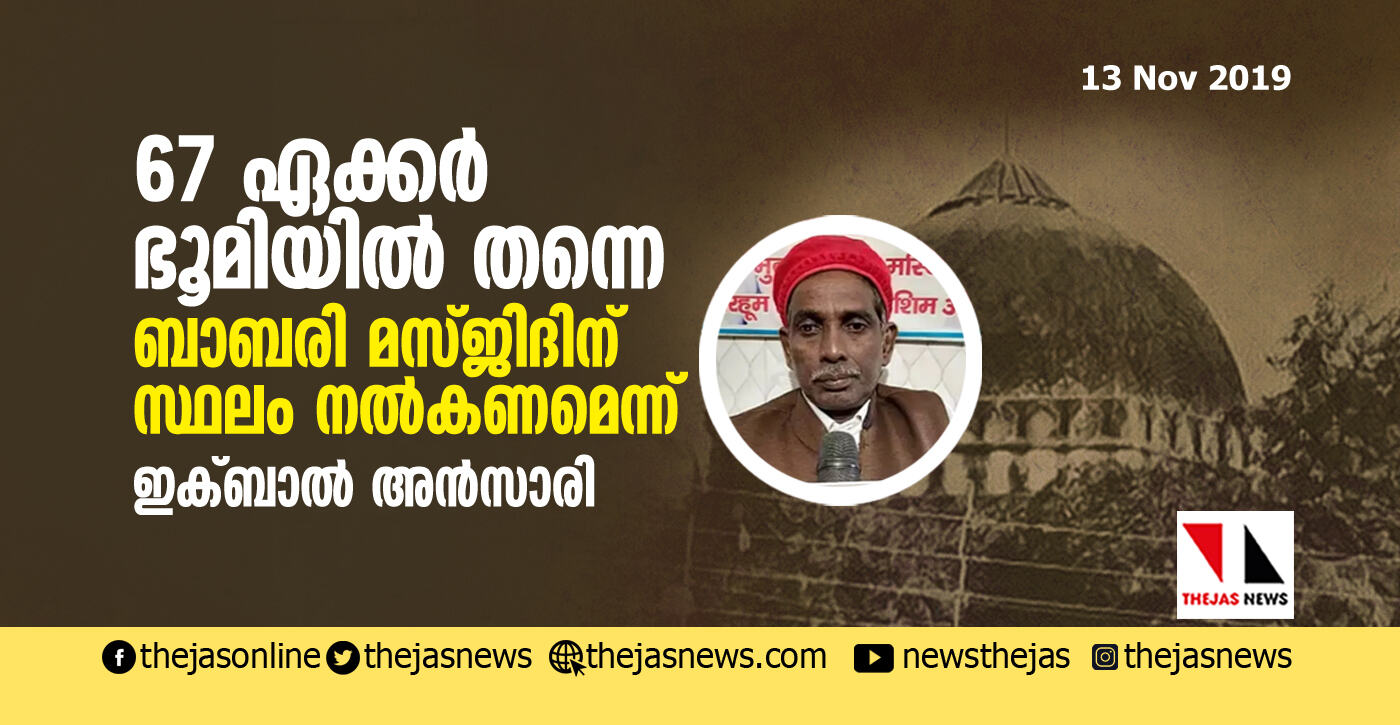 67 ഏക്കര് ഭൂമിയില് തന്നെ ബാബരി മസ്ജിദിന് സ്ഥലം നല്കണമെന്ന് ഇക്ബാല് അന്സാരി