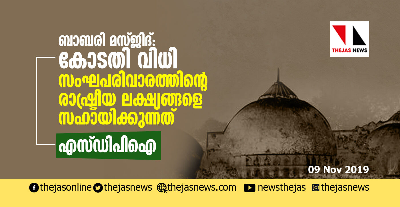 ബാബരി മസ്ജിദ്: കോടതി വിധി സംഘപരിവാരത്തിന്റെ രാഷ്ട്രീയ ലക്ഷ്യങ്ങളെ സഹായിക്കുന്നത് എസ്ഡിപിഐ
