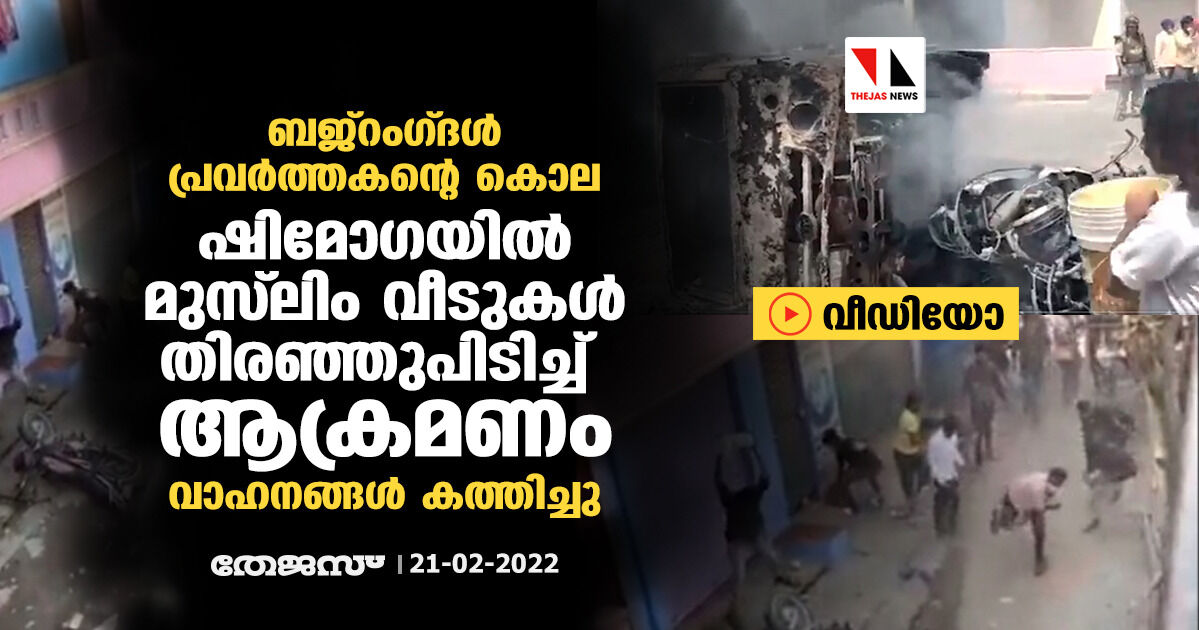 ബജ്റംഗ്ദള് പ്രവര്ത്തകന്റെ കൊല: ഷിമോഗയില് മുസ് ലിം വീടുകള് തിരഞ്ഞുപിടിച്ച് ആക്രമണം; വാഹനങ്ങള് കത്തിച്ചു (വീഡിയോ)