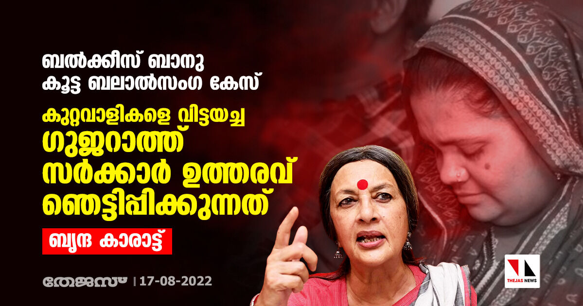 ബല്ക്കീസ് ബാനു കൂട്ട ബലാല്സംഗ കേസ്: കുറ്റവാളികളെ വിട്ടയച്ച ഗുജറാത്ത് സര്ക്കാര് ഉത്തരവ് ഞെട്ടിപ്പിക്കുന്നതെന്ന് ബൃന്ദ കാരാട്ട്