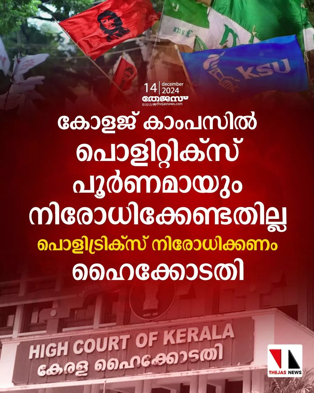 വിദ്യാര്ഥി രാഷ്ട്രീയം പൂര്ണമായും നിരോധിക്കേണ്ടതില്ല; അപകടകരമായ പ്രവണതകളെ ഇല്ലാതാക്കിയാല് മതി: ഹൈക്കോടതി