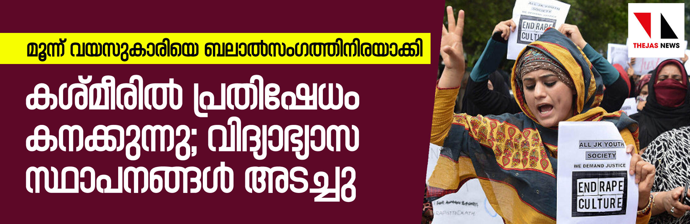 മൂന്ന് വയസുകാരിയെ ബലാല്സംഗത്തിനിരയാക്കി; കശ്മീരില് പ്രതിഷേധം കനക്കുന്നു; വിദ്യാഭ്യാസ സ്ഥാപനങ്ങള് അടച്ചു