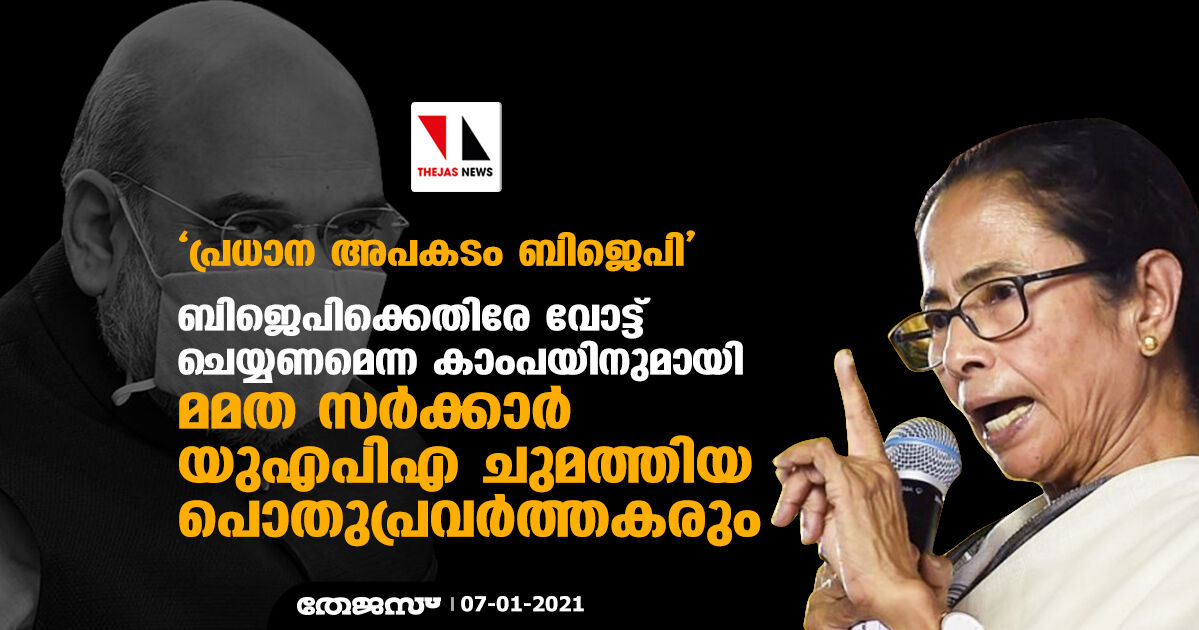 'പ്രധാന അപകടം ബിജെപി'; ബിജെപിക്കെതിരേ വോട്ട് ചെയ്യണമെന്ന ആഹ്വാനവുമായി മമത സര്ക്കാര് യുഎപിഎ ചുമത്തിയ പൊതുപ്രവര്ത്തകരും