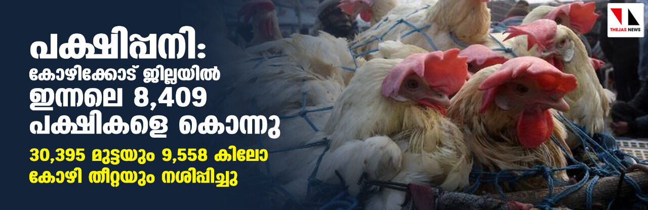 പക്ഷിപ്പനി: കോഴിക്കോട് ജില്ലയിൽ ഇന്നലെ 8,409 പക്ഷികളെ കൊന്നു; 30,395 മുട്ടയും 9,558 കിലോ കോഴി തീറ്റയും നശിപ്പിച്ചു