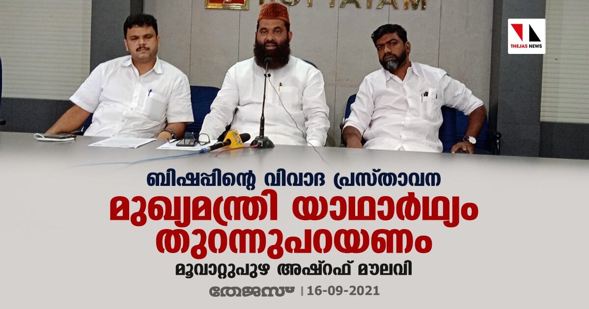 ബിഷപ്പിന്റെ വിവാദ പ്രസ്താവന: മുഖ്യമന്ത്രി യാഥാര്ഥ്യം തുറന്നുപറയണം- മൂവാറ്റുപുഴ അഷ്റഫ് മൗലവി