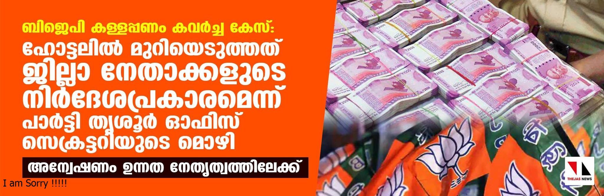 ബിജെപി കള്ളപ്പണം കവര്ച്ച കേസ്: ഹോട്ടലില് മുറിയെടുത്തത് ജില്ലാ നേതാക്കളുടെ നിര്ദേശപ്രകാരമെന്ന് പാര്ട്ടി തൃശൂര് ഓഫിസ് സെക്രട്ടറിയുടെ മൊഴി, അന്വേഷണം ഉന്നത നേതൃത്വത്തിലേക്ക്