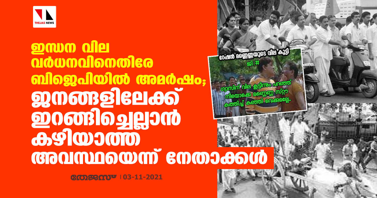 ഇന്ധന വിലവര്ധനവിനെതിരേ ബിജെപിയില് അമര്ഷം; ജനങ്ങളിലേക്ക് ഇറങ്ങിച്ചെല്ലാന് കഴിയാത്ത അവസ്ഥയെന്ന് നേതാക്കള്