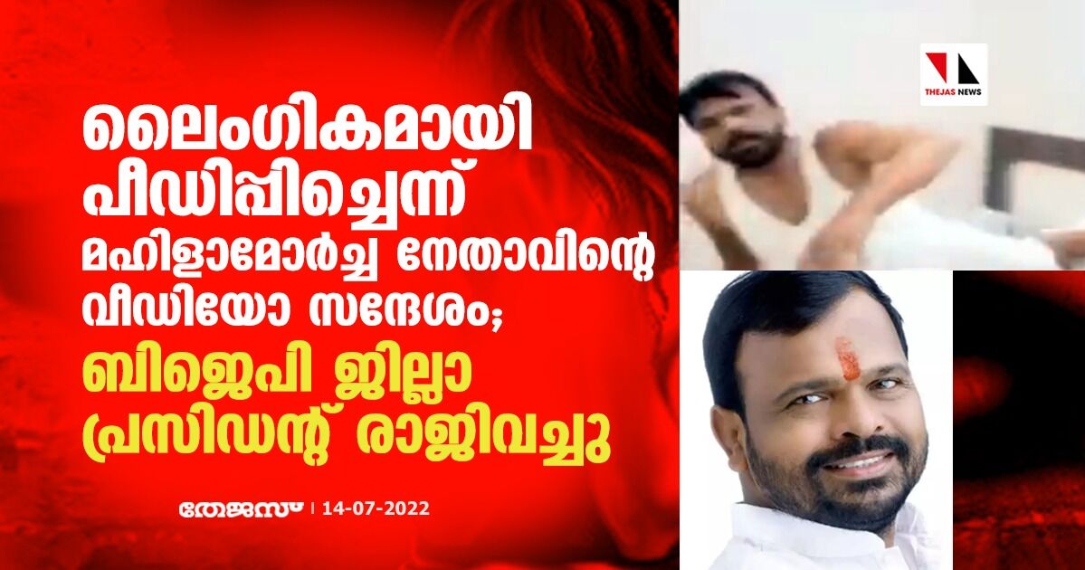 ലൈംഗികമായി പീഡിപ്പിച്ചെന്ന് മഹിളാമോര്ച്ച നേതാവിന്റെ വീഡിയോ സന്ദേശം; ബിജെപി ജില്ലാ പ്രസിഡന്റ് രാജിവച്ചു