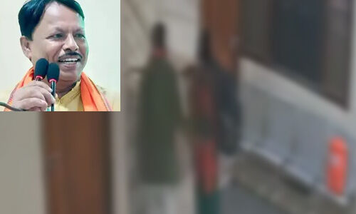In UP's Gonda, a purported CCTV footage of BJP district president Amar Kishor Kashyap alias "Bam Bam" hugging a woman at the party office has surfaced. He reportedly claimed he was merely assisting the woman who was feeling unwell. pic.twitter.com/g171smPo3V