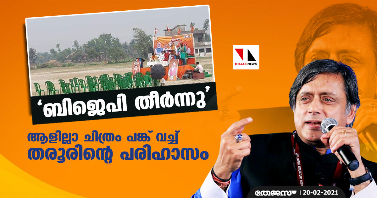 'ബിജെപി തീര്ന്നു'; ആളില്ലാ ചിത്രം പങ്ക് വച്ച് തരൂരിന്റെ പരിഹാസം