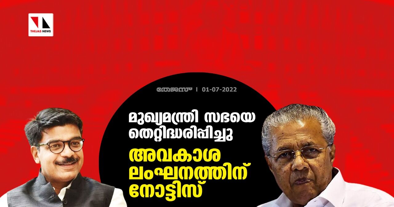 മുഖ്യമന്ത്രി സഭയെ തെറ്റിദ്ധരിപ്പിച്ചു; അവകാശ ലംഘനത്തിന് നോട്ടിസ്