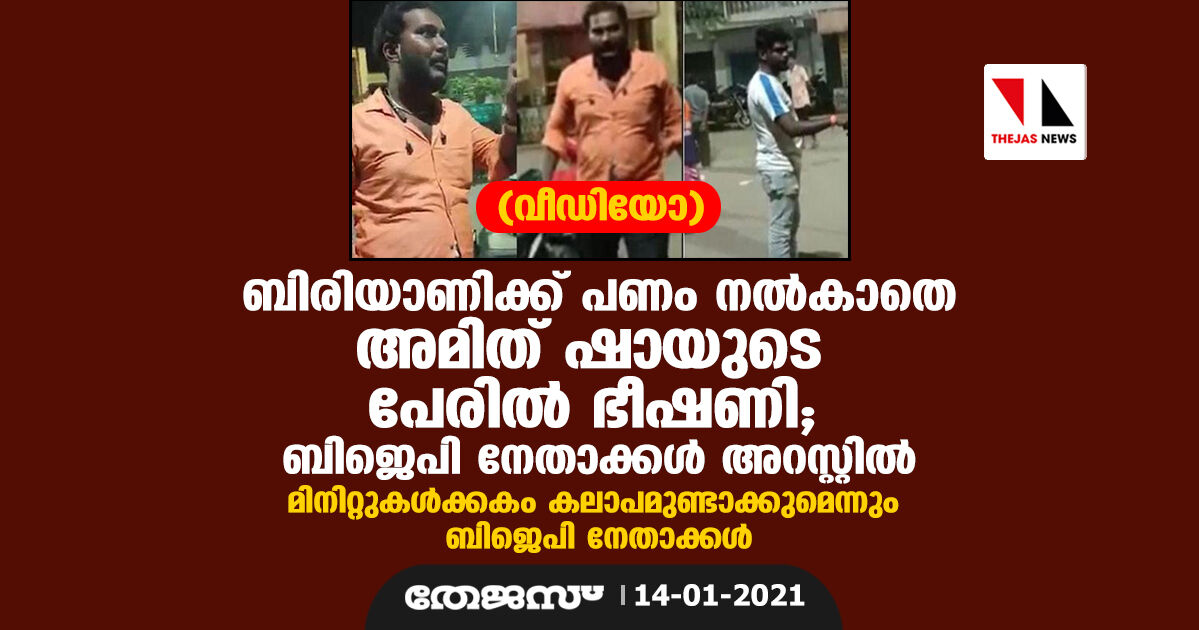 ബിരിയാണിക്ക് പണം നല്കാതെ അമിത് ഷായുടെ പേരില് ഭീഷണി; മൂന്ന് ബിജെപി നേതാക്കള് അറസ്റ്റില് (വീഡിയോ)