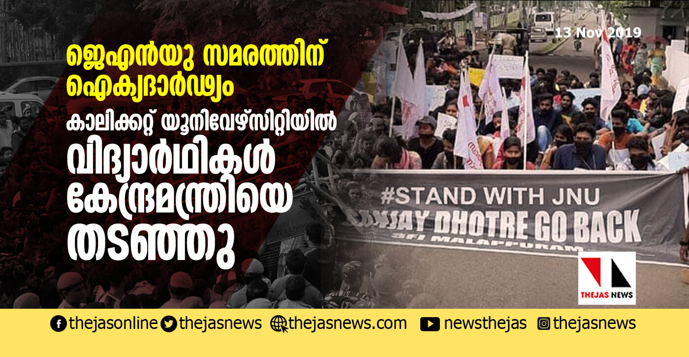 ജെഎന്യു സമരത്തിന് ഐക്യദാര്ഢ്യം; കാലിക്കറ്റ് യൂനിവേഴ്സിറ്റിയില് വിദ്യാര്ഥികള് കേന്ദ്രമന്ത്രിയെ തടഞ്ഞു