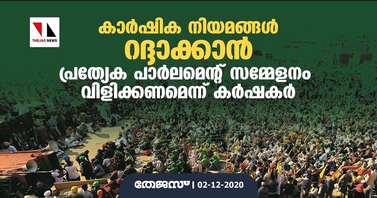 കാർഷിക നിയമങ്ങൾ റദ്ദാക്കാൻ പ്രത്യേക പാർലമെന്റ് സമ്മേളനം വിളിക്കണമെന്ന് കർഷകർ