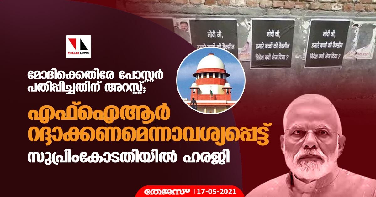 മോദിക്കെതിരേ പോസ്റ്റര് പതിപ്പിച്ചതിന് അറസ്റ്റ്; എഫ്ഐആര് റദ്ദാക്കണമെന്നാവശ്യപ്പെട്ട് സുപ്രിംകോടതിയില് ഹരജി