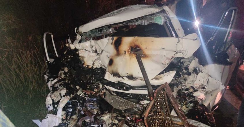 കല്ലമ്പലത്ത് കാറും മീന് ലോറിയും കൂട്ടിയിടിച്ചു; കാര് യാത്രികരായ അഞ്ച് പേര് മരിച്ചു