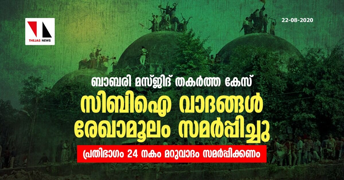 ബാബരി മസ്ജിദ് തകര്ത്ത കേസ്: സിബിഐ വാദങ്ങള് രേഖാമൂലം സമര്പ്പിച്ചു; പ്രതിഭാഗം 24 നകം മറുവാദം സമര്പ്പിക്കണം
